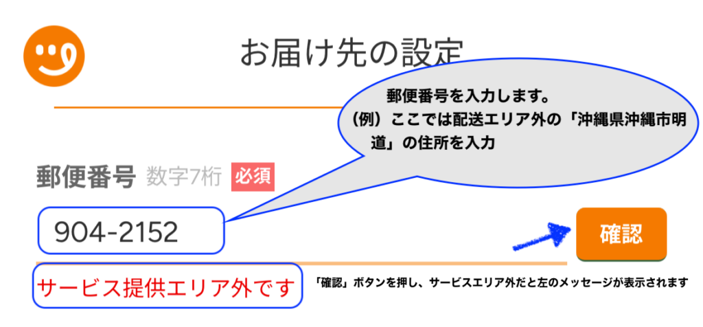 確かにいざ利用したいけど、離島などに住んでいる方にとっては、配送エリア内になるのかって不安になることってあると思います。